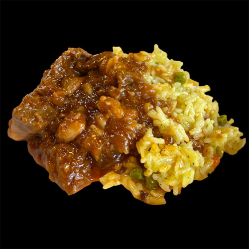 СВИНСКО ПО СЕЛСКИ С ЧЕРВЕНО ВИНО И ОРИЗ ГАРНИТУРА